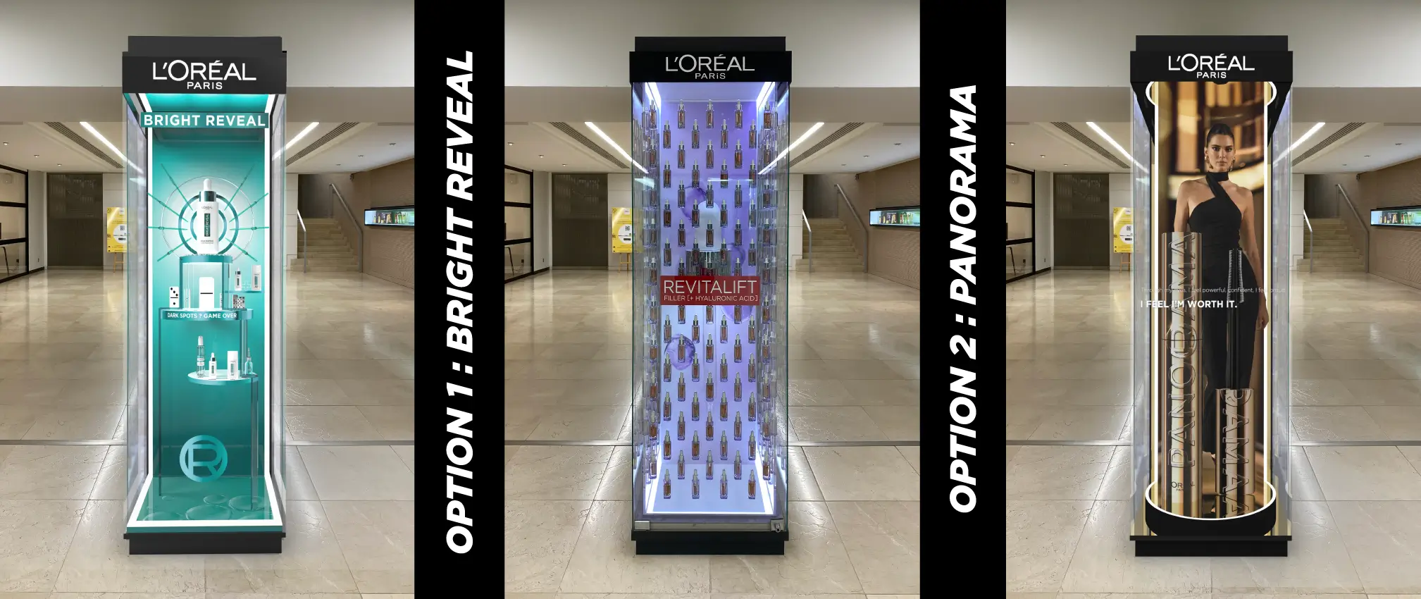 Project added value to the past revitalift window : Easy recognition of the brand, the launch, the product and the new muse. Woman empowerment through L’Oreal.