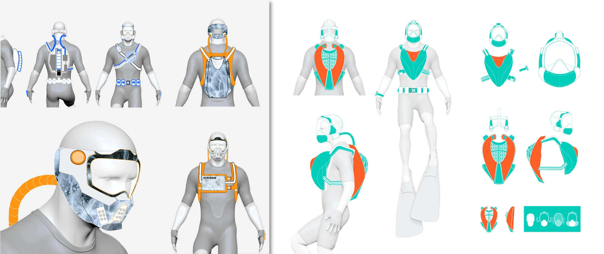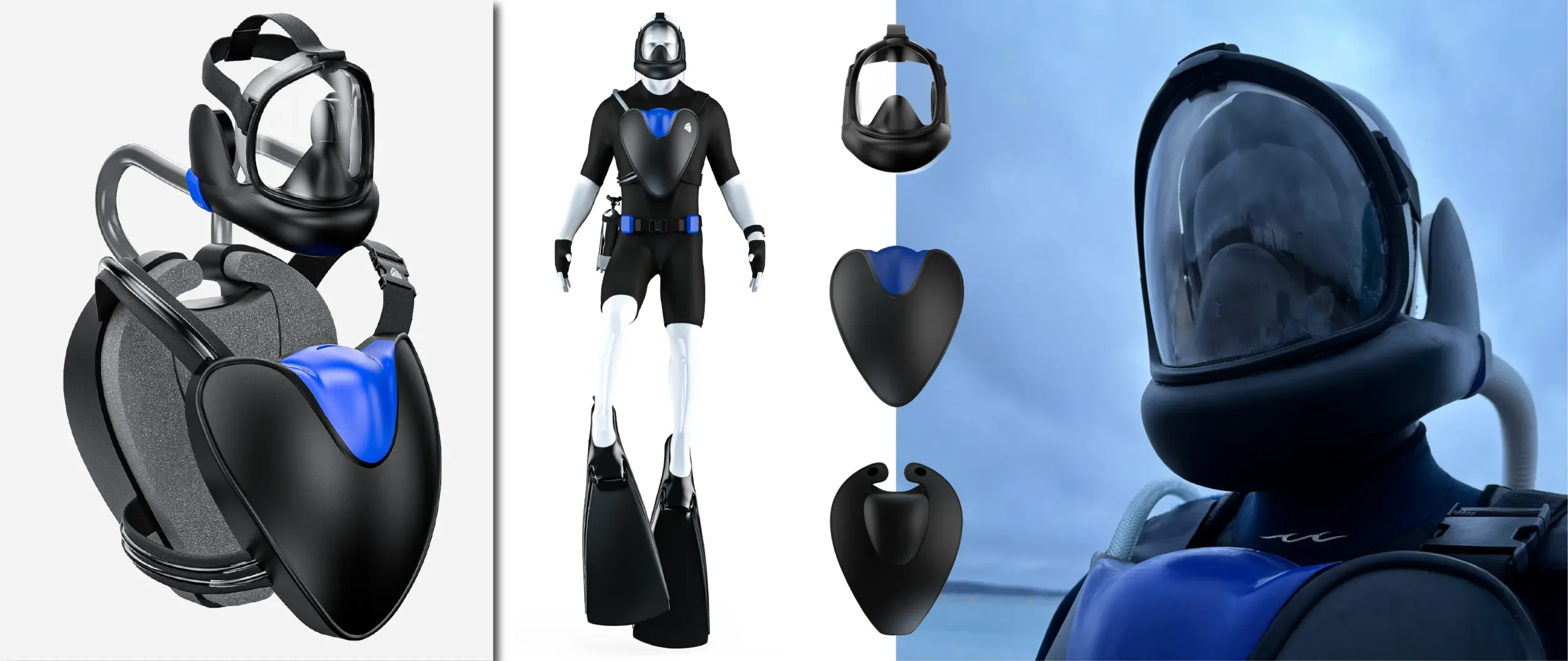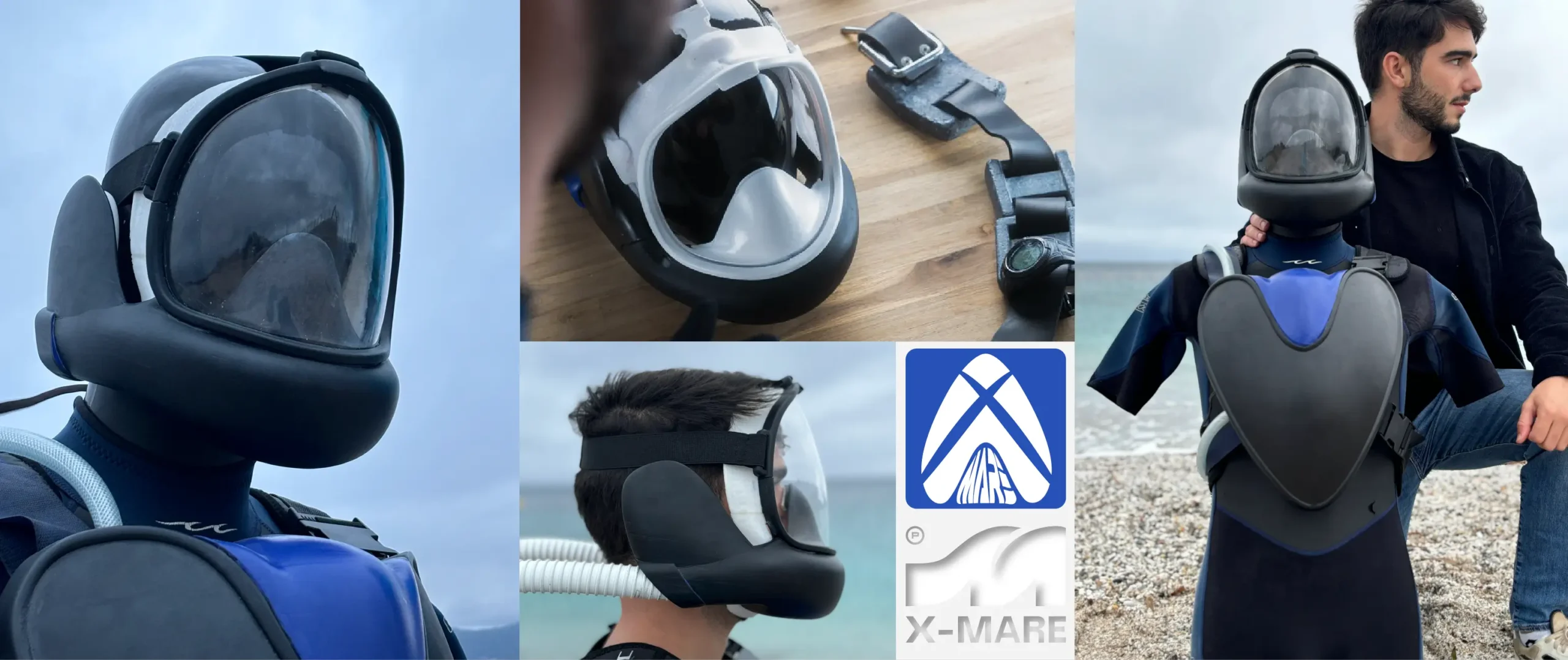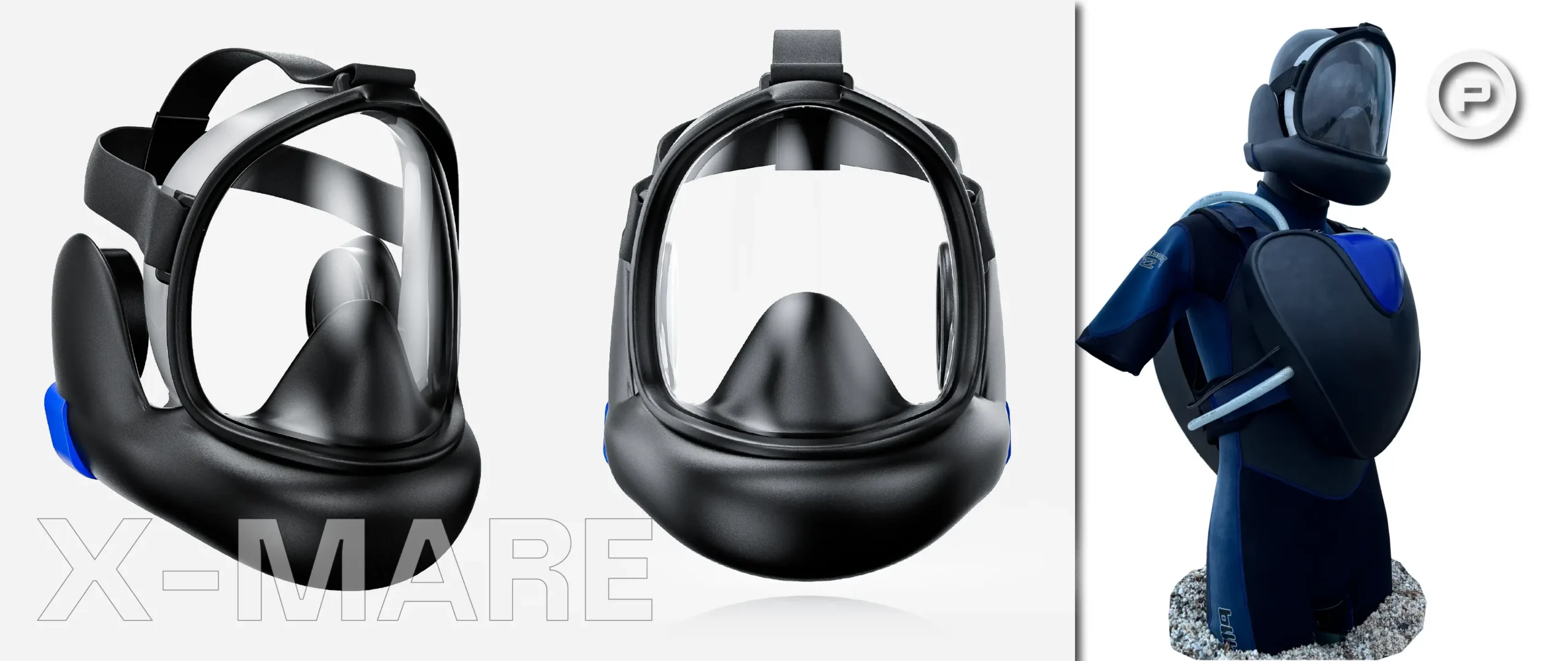 With the overall sea level rise and the development of aquatic activities following this change, I wanted to help improve human mobility underwater, this led to the creation of the AQUATECH technology. The X-MARE project is a portable equipment using this technology. It allows to generate oxygen in real time thanks to an electrolyzer (device which uses electricity to divide water H2O into O2 and H2) placed in the plastron, the system of gas exchange in the backpack and the mask connected to it. All forming a rebreather of a new kind, transportable and meeting the needs of diving professionals.